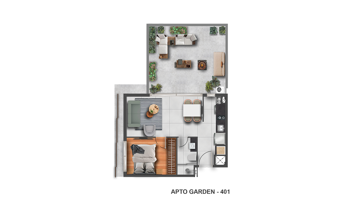 1 dormitório, 50m² com churrasqueira e área externa privativa.